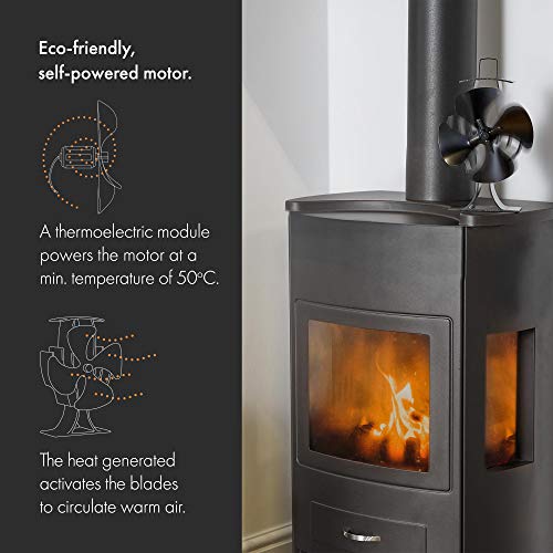 The VonHaus 4 Blade Stove Fan is an affordable model designed to eco-friendly and efficient, its looks nearly identical to our best pick by Valiant and its good, its just not quite as good in terms of features, no overheating feature for example, the build quality is also probably not on par either. However, for the price and the fact that it comes with a heat thermometer to monitor the temperature, it's well well considering if you're after a cheaper alternative. Being that it is a heat powered like all models, it features a thermoplastic module that then activates the motor to move the blades.